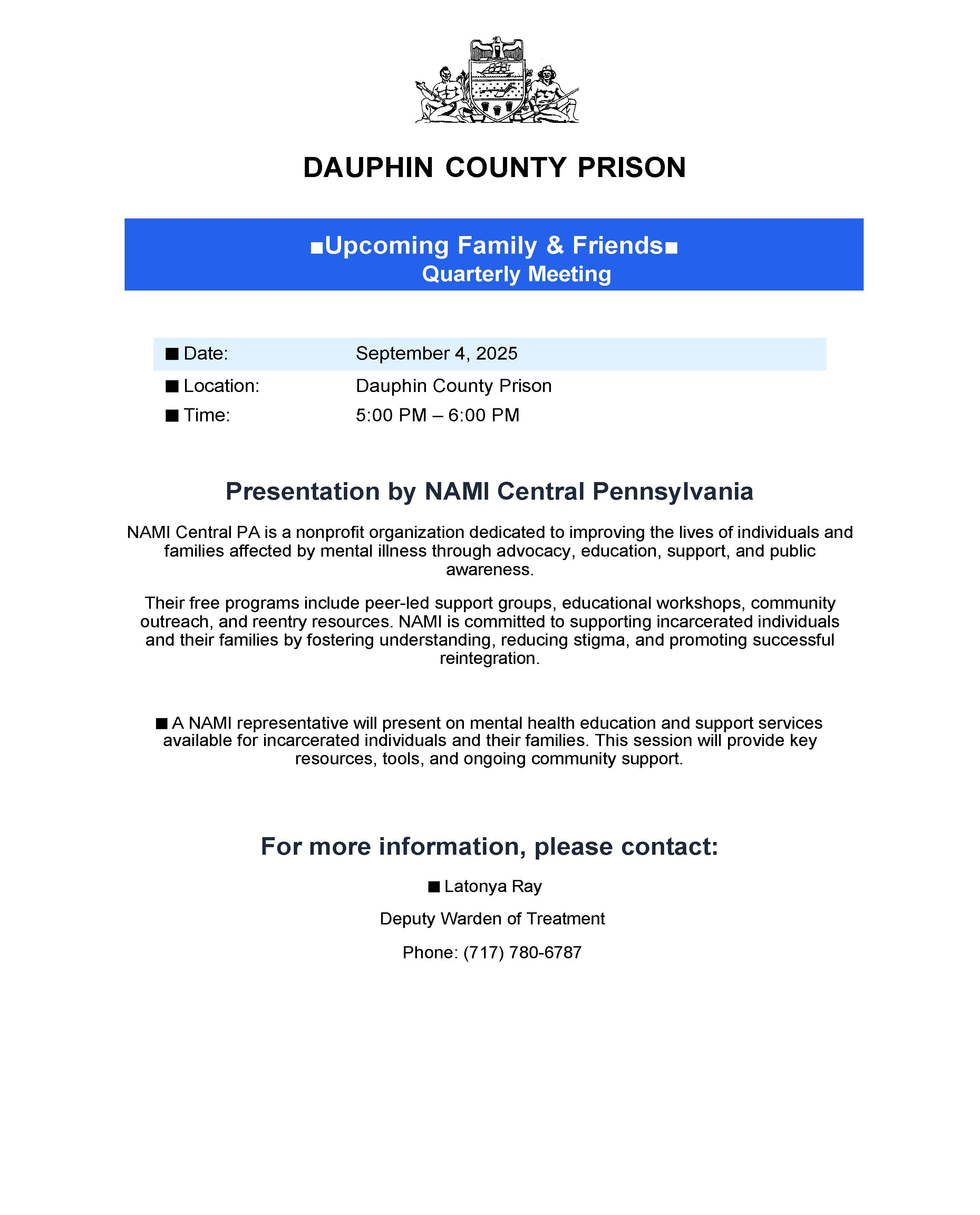September 4, 2025: Family & Friends Quarterly Meeting @ 5PM-6PM